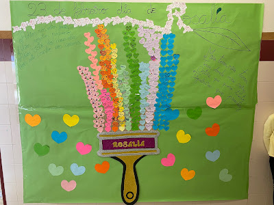 Hoxe conmemoramos o Día de Rosalía cunha proposta interesantísima do Equipo de dinamización da Lingua Galega. Enmarcado no proxecto Este Picasso é un caso, o alumnado do centro construiu unha brocha con corazóns que levaban palabras clave da nosa gran poeta.